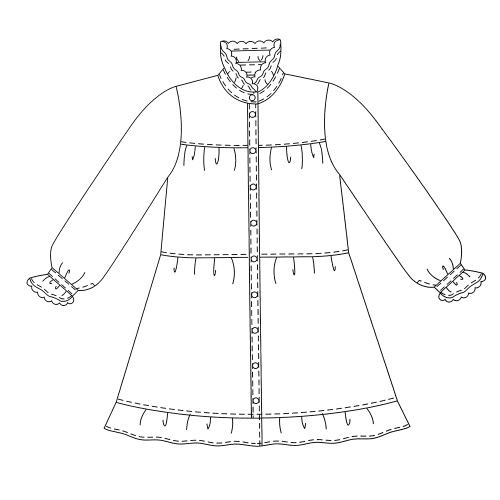 Button Front Baby Doll Dress with Long Sleeves