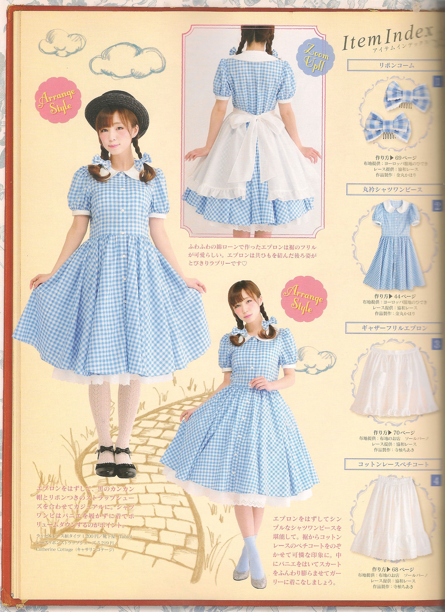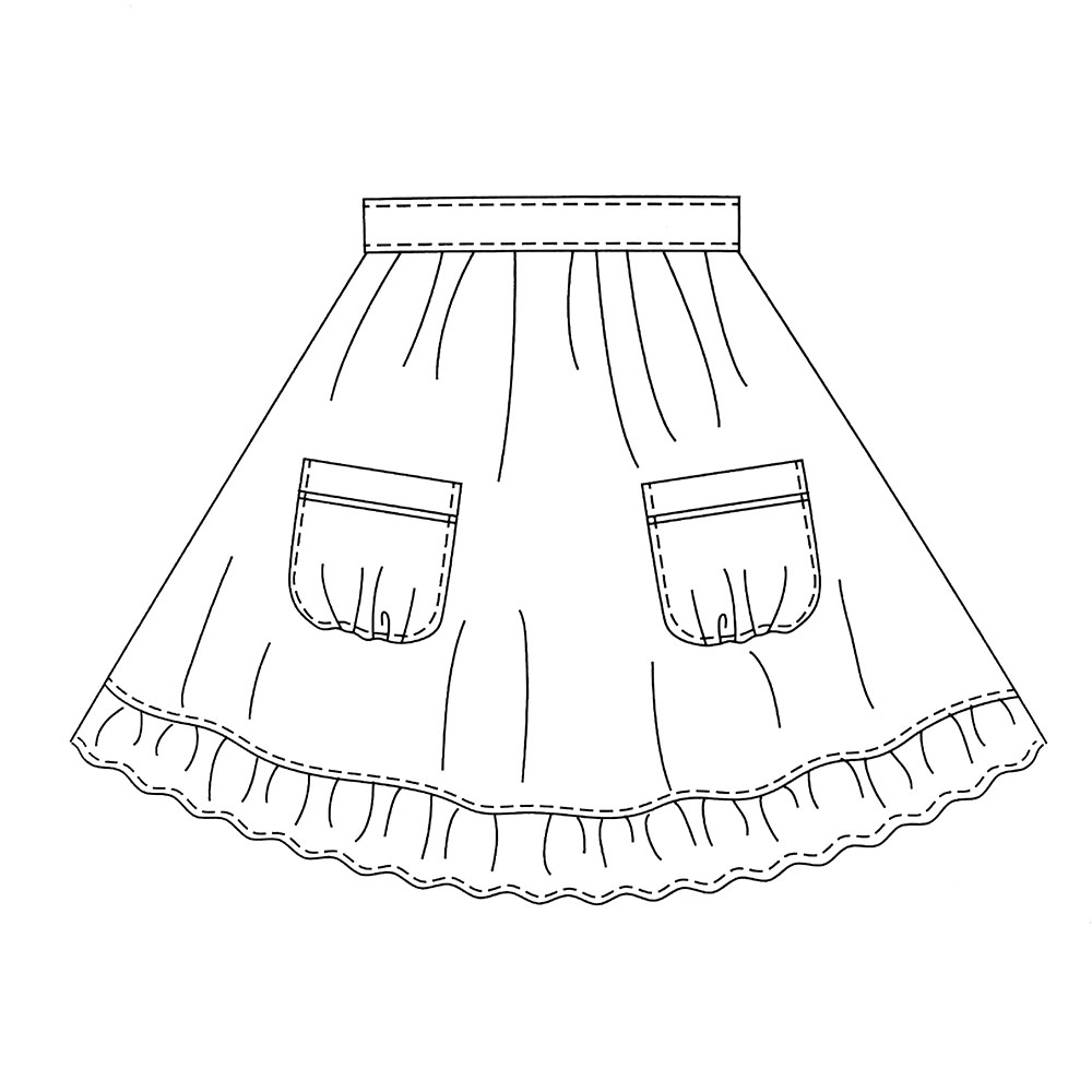This Set Includes: #02 One Piece Dress with Round Collar #03 Apron with Pockets #04 Petticoat