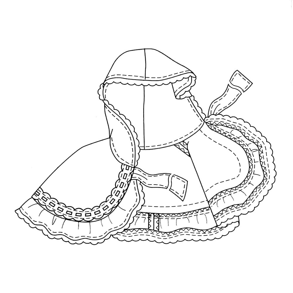 This Bundle Includes: #07 Hooded Cape #08 Short Sleeve Blouse #09 Skirt #10 Belt #11 Elastic Headband with Bow