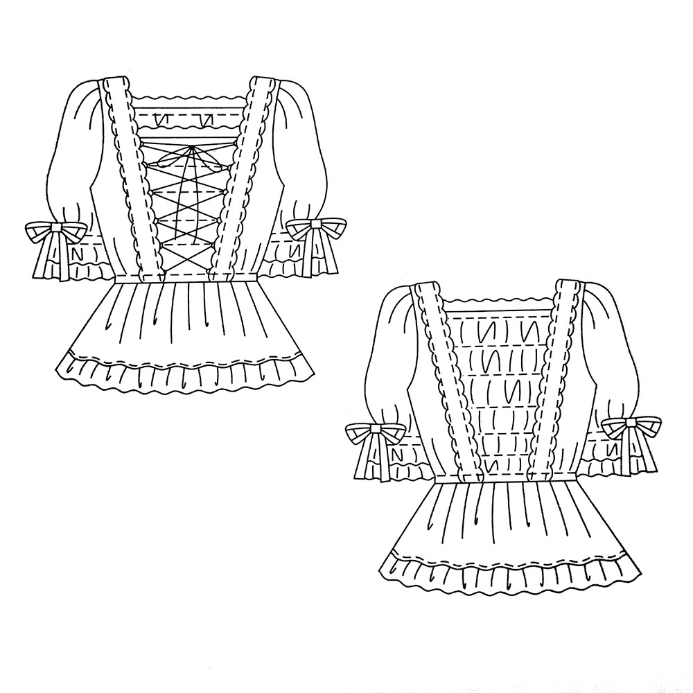 This Collection Includes: #09 Jumperskirt with Tiered Skirt #10 Collar #11 Shirred Blouse #12 Short Sleeved Bolero #13 Long Skirt #14 Half Bonnet #15 Headband with Bow