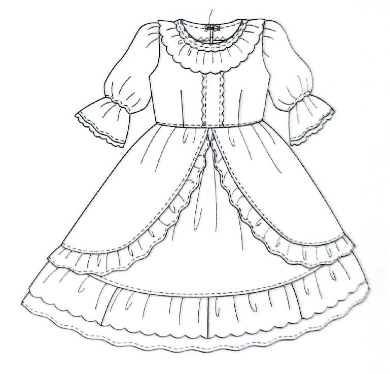 #08 One Piece Dress with Open Front Skirt #09 Bonnet #10 Detachable Lace Sleeves